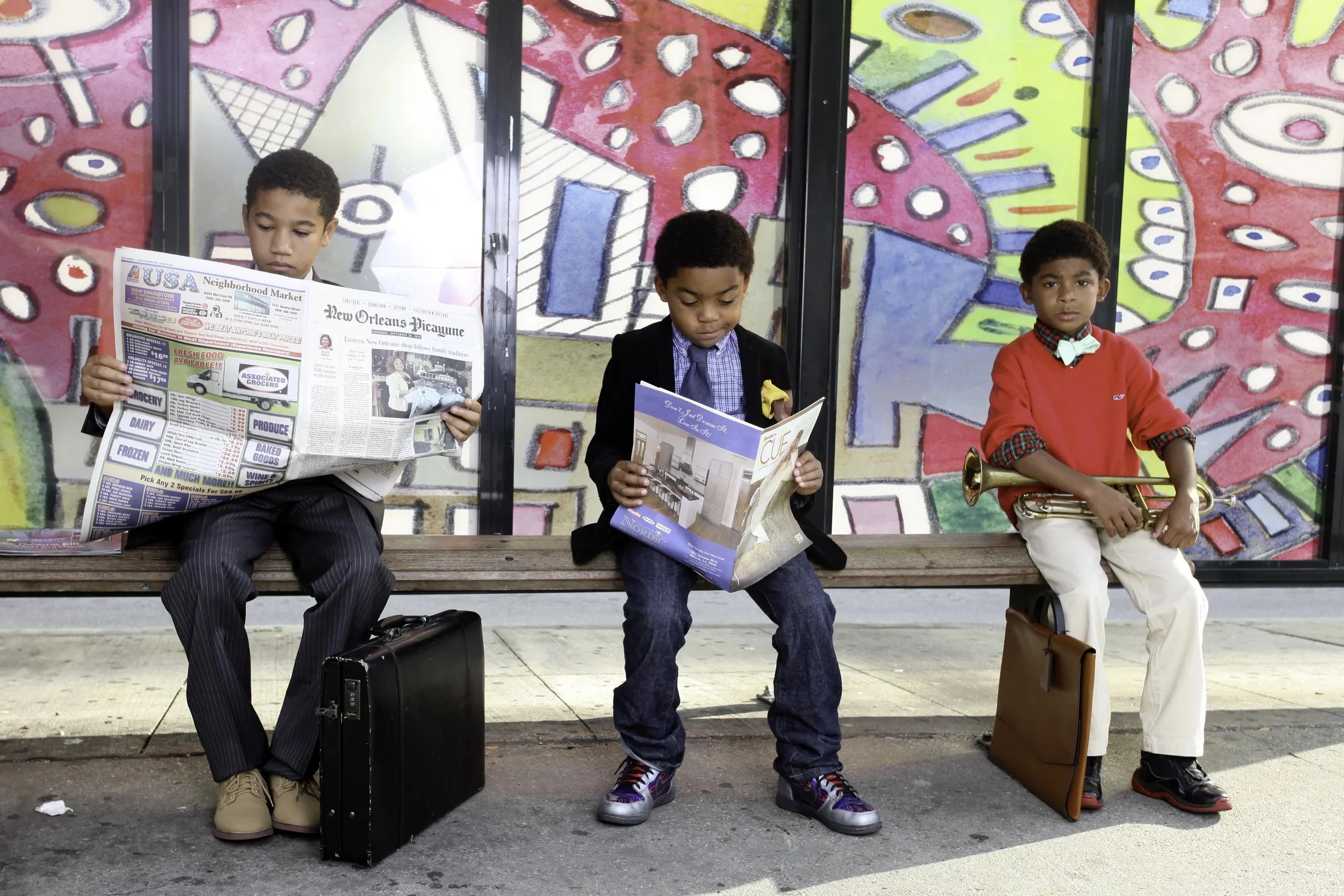 When Barack Obama became president in 2008, Black communities across the nation felt a sense of joy, pride, and relief. Harris’s Dreams Do Come True photo series speaks to this era of promises, hopefulness, and a “yes we can” mentality. Black children saw a Black man serve in the White House at the highest level of government. Obama’s presidency inspired younger and older generations. In one image, Harris displays three young Black children sitting at a bus stop in professional work attire. One holds a trumpet and a briefcase; the second child is reading a magazine; the third child is reading a newspaper with a briefcase. This image illustrates that Black children can aspire for greatness on their own terms. “This moment in my artistic practice is fulfilling for me, and I think it's important to share my story as I share other stories because I want that little boy, or little girl, or a big person to see what I've done,” he said.